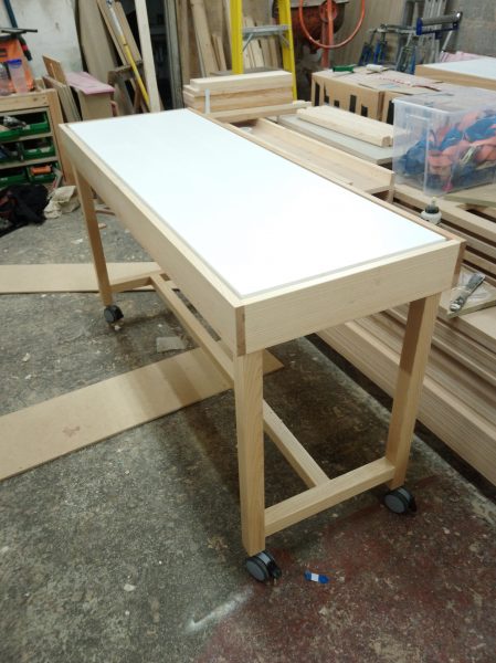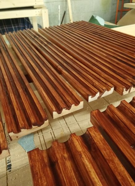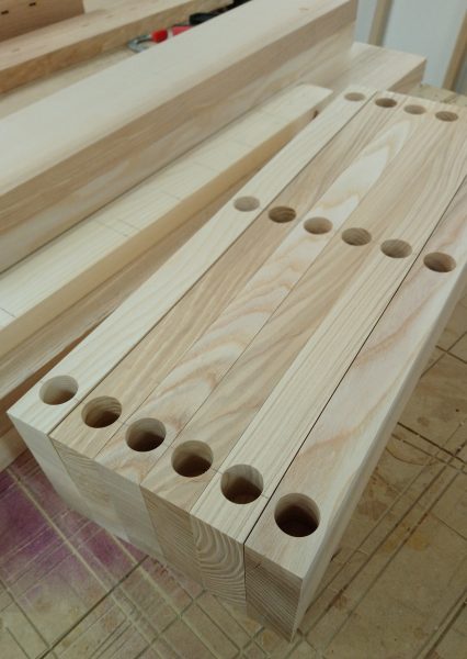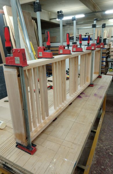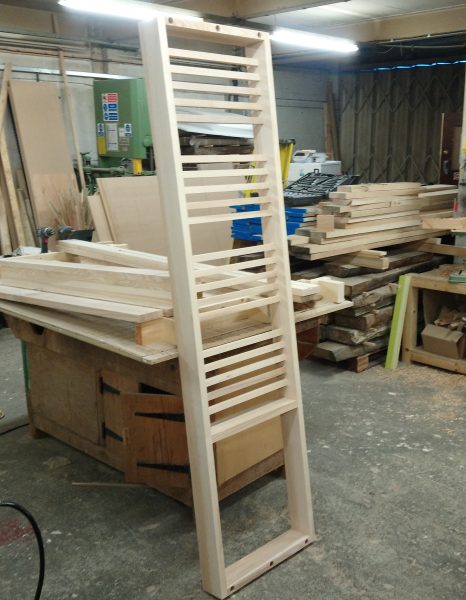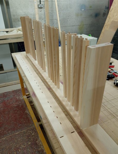 The making of display walls and cases commissioned by the Royal Birmingham Conservatoire. Made of European ash, this will be a modular system that can be configured in many ways, with the 5 bar design being a subtle nod to the musical stave.